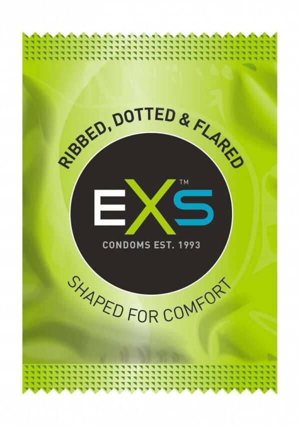 EXS 3 in 1 – Ribbed, Dotted and Flared – Condoms – 144 PiecesEXS geribbelde en gestippelde condooms zijn 56 mm breed met een comfortabel uitlopend speenuiteinde. Dit EXS condoom is geribbeld en gestippeld voor extra stimulatie voor je partner. EXS geribbeld en gestippeld hebben geen latexgeur en zijn gemaakt van een dunne maar sterke zijdeachtige latex.EXS geribbelde en gestippelde condooms zijn uitvoerig getest volgens de Europese normen en door het British Standards Institute (BSI)