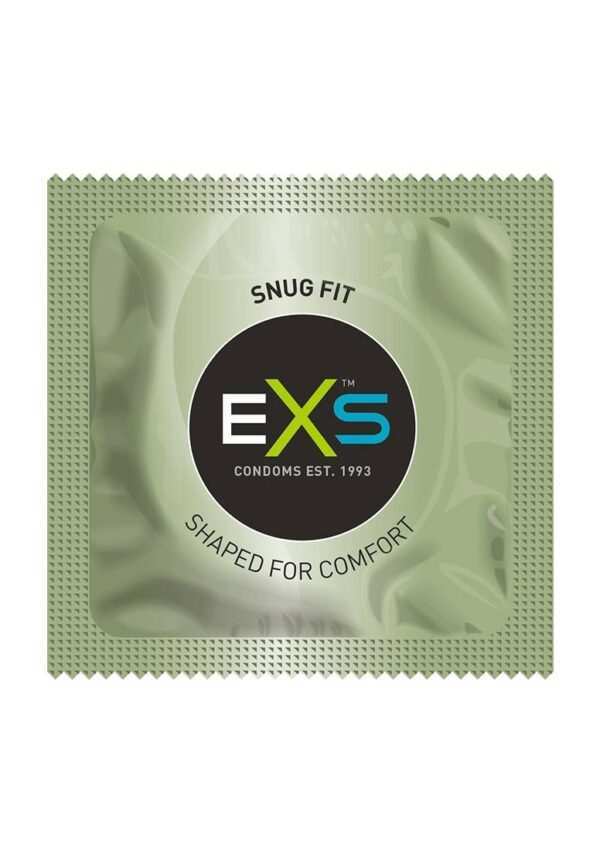 EXS Snug Fit – Condoms – 100 PiecesGlad, effen condoom van natuurlijk latex, wijd uitlopend condoom met speen en siliconengesmeerd condoom Voor een strakker en beter passend condoom kiest u EXS Snug Fit. Ze zijn 49 mm breed en hebben een rechte wand en een speenuiteinde. EXS Snug Fit condooms hebben geen latexgeur en zijn gemaakt van een dunne maar sterke zijdeachtige latex. Krachtig getest volgens de Europese normen en door het British Standards Institute (BSI) Dit product is extreem dun maar heeft de sterkte van dikkere reguliere latexcondooms.