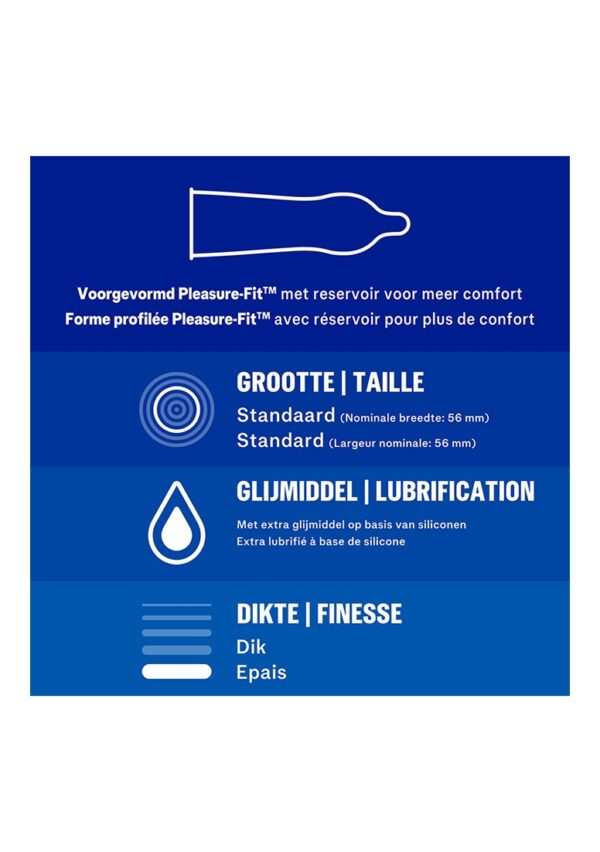 Originals Extra Safe – Condoms – 12 PiecesDe Durex Orgasm’Intense condooms zijn ideaal om je partner nog intenser te laten genieten. De ribbels en noppen zorgen voor extra stimulatie en de condooms hebben een speciaal glijmiddel met een warm, koud of tintelend effect waardoor je partner nog intenser wordt. orgasme.Geen enkele vorm van anticonceptie biedt u 100 betrouwbare bescherming tegen zwangerschap, hiv (aids) of andere seksueel overdraagbare aandoeningen. Lees aandachtig de instructies aan de binnenkant van de verpakking, vooral bij gebruik van het condoom voor anale of orale seks.