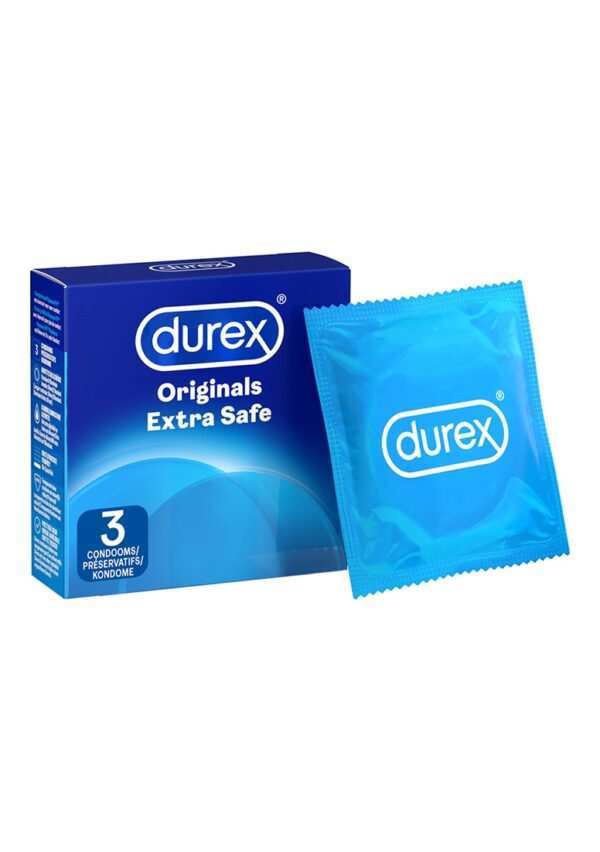 Originals Extra Safe – Condoms – 3 PiecesIedereen is anders, maar de juiste pasvorm moet altijd comfortabel en veilig zijn. Daarom zijn Durex Originals XL-condooms extra groot, een comfortabele pasvorm voor mannen die een grotere maat nodig hebben dan ons Originals Classic Natural-condoom. Geen enkele vorm van anticonceptie biedt 100 betrouwbare bescherming tegen zwangerschap, hiv (aids) of andere seksueel overdraagbare aandoeningen. Lees de instructies aan de binnenkant van de verpakking goed door, vooral als u het condoom gebruikt voor anale orale seks.