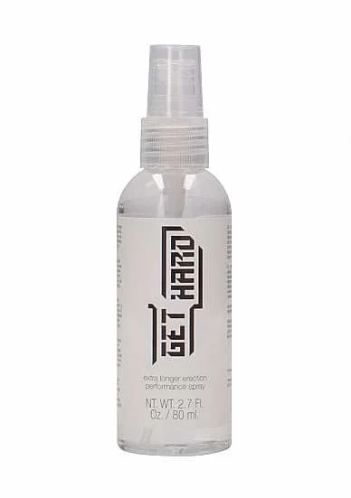 Get Hard – Stimulating Spray – 3 fl oz / 80 mlDe exclusieve ingredienten bevorderen een langer durende erectie. Gebruiksaanwijzing: Spray 1 tot 3 keer direct op de penis. Na ongeveer 15 minuten is de vloeistof goed in de huid van de penis ingetrokken en heeft dan een plaatselijk verdovend effect. Uitsluitend voor uitwendig gebruik. Buiten het bereik van kleine kinderen bewaren. Koel en donker bewaren.