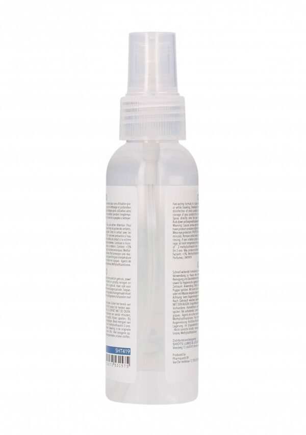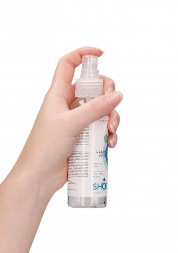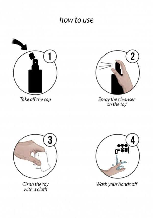 Cleaner Spray – 3 fl oz / 100 mlSnelwerkende formule in een spuitfles voor praktisch gebruik, zowel thuis als op reis. Ontworpen voor efficient en grondig reinigen en desinfecteren van erotische poppen na gebruik, maar ook voor hygienisch opbergen van uw producten voor langere periode. Toepassing: Spuit direct op het gedeelte van de pop dat schoongemaakt moet worden. Inwrijven en afvegen met een vochtige doek of afspoelen met water, en daarna afdrogen. Waarschuwing: Kan oogirritatie veroorzaken. Buiten het bereik van kinderen houden. Na het werken met dit product de handen wassen. Contact met de ogen vermijden. BIJ CONTACT MET DE OGEN: voorzichtig afspoelen met water gedurende een aantal minuten contactlenzen verwijderen, indien mogelijk blijven spoelen. Bij aanhoudende oogirritatie: een arts raadplegen.