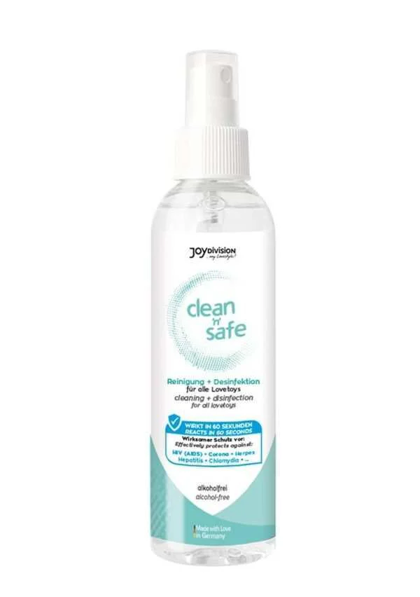 Clean´N´Safe – Cleaner – 3 fl oz / 100 mlEen veilige gok voor meer plezier! De clean’n’safe reinigings-, onderhouds- en desinfectievloeistof reinigt de dingen die schoongemaakt moeten worden, zodat je kunt blijven genieten van allround seksueel plezier. Het bestrijdt effectief alle vormen van ziektekiemen, bacterien en schimmels. De vloeistof tast gevoelige materialen niet aan en is door zijn zachte formule bijzonder geschikt voor de gevoelige huid of slijmvliezen. Gebruik clean’n’safe, want schoon betekent veilig en veilig betekent meer plezier.
