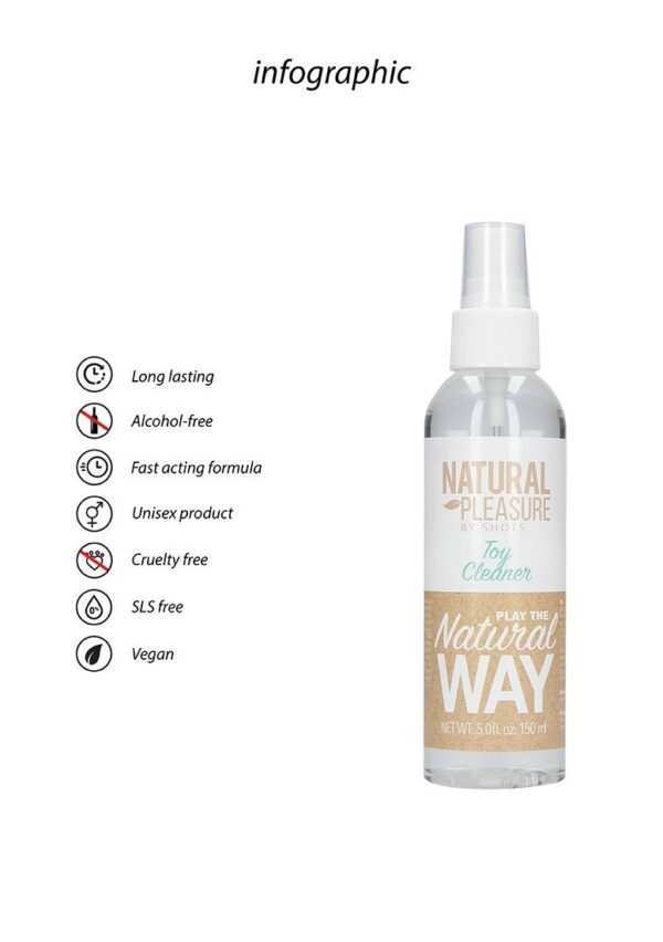 Toy Cleaner – 5 fl oz / 150 mlToy Cleaner: Een onmiddellijke en effectieve spray voor het reinigen van erotisch speelgoed. Toepassing:Spuit direct op het oppervlak van het te reiningen product. Spoel af met water of gebruik een vochtige doek. Wrijf het vervolgens droog. Dit product bevat geen kleurstoffen, parabenen, fosfaten, chloor, ammonia of zuren. Vol met natuurlijke ingredienten, minstens 95 biologisch afbreekbaar. Bewaring:In de originele verpakking bij kamertemperatuur. Veiligheidsinformatie: Amfotere oppervlakteactieve stoffen, anionogene oppervlakteactieve stoffen 5, Sodium Benzoate.