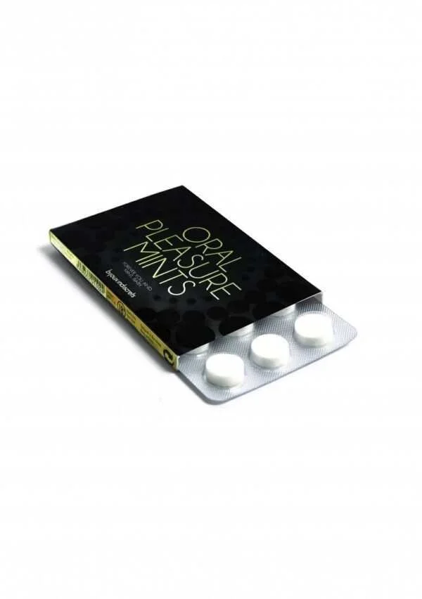 Oral Pleasure Mints – PeppermintEen heerlijke zaligheid neemt je zintuigen over en maakt van oraal genot een zeer intense ervaring.Pepermunt gearomatiseerde suikervrije pepermuntjes -met een vleugje lust- die de meest ervaren liefhebbers zullen bekoren.Inhoud Pepermunt gearomatiseerde suikervrije orale seks pepermuntjes (verpakking van 12). Gemaakt in China.