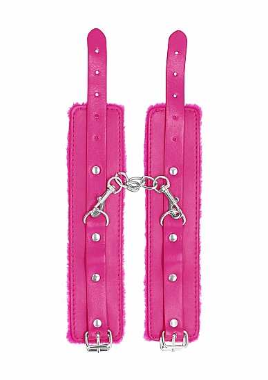Plush Leather HandcuffsDe OUCH!- handboeien zijn ontworpenmet het oog op comfort terwijl je vastgebondenbent in je rollenspel! De handboeienhebben een pluchen bekleding,een aanpasbare riem met een stevigeklem voor een perfecte pasvorm en eenextra ring voor gemakkelijke bevestiging!