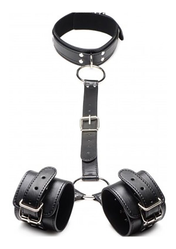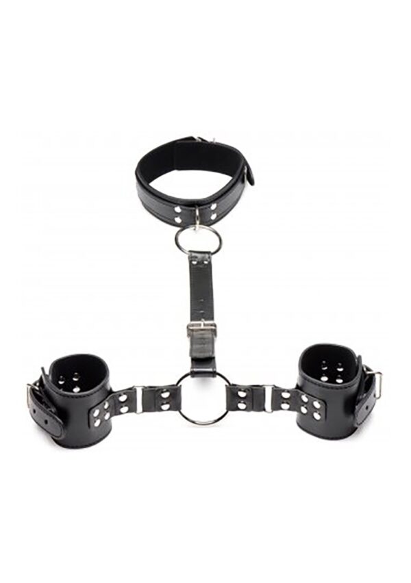 Neck To Wrist BindingsMaak je onderdanige vast met deze Neck to Wrist-boeien! De zachte binnenvoering is zacht voor de huid, zodat je de halsband en polsboeien zo strak kunt aantrekken als comfortabel is. Het veganistische PU-leer is gemakkelijk schoon te maken en behoudt toch de sexy, klassieke leren look! De grote O-ringen zijn gemaakt van sterk, nikkelvrij metaal en kunnen worden vastgemaakt met andere bondage-items. Gebruik de gesp om de perfecte pasvorm te creëren. Haak je vingers om de O-ringen en trek je geliefde naar je toe. Speel met het bevestigen van de O-ringen aan verschillende ankerpunten of plaats hun handen ver van hen vandaan. Hun polsen worden geboeid en vastgebonden, de middelste band wordt bevestigd aan hun nek met kraag. Houd de middelste band kort om hun handen net buiten bereik van hun genitaliën te houden, zodat ze niet met zichzelf kunnen spelen en kunnen genieten van plagen en spelen met hen. Beperk hun beweging nog meer door de band naar achteren te brengen en hun vastgebonden polsen achter hun rug te plaatsen. Nadat je klaar bent met spelen, gebruik je een speelgoedreiniger en spuit je de bandjes en het metaal schoon. Veeg het daarna schoon met een zachte doek. Bewaar het op een koele, donkere plek, uit de buurt van scherpe of ruwe materialen. Afmetingen: Breedte van de halsband: 1,5 inch, halsband is verstelbaar van 12,5 inch tot 16,5 inch omtrek, Breedte van de manchetten: 2,5 inch, manchetten zijn verstelbaar van 7,5 inch tot 10 inch omtrek. Achterband is verstelbaar van 10,5 inch tot 16,5 inch in lengte. Materialen: PU-leer, metaal Kleur: Zwart, metaal Belangrijkste kenmerken: PU-leer: Dit veganistische leer is gemakkelijk schoon te maken en heeft nog steeds de klassieke, sexy leren stijl! Grote O-ringen: Bevestig dit ontwerp met O-ringen die gemakkelijk aan andere bondage-items kunnen worden bevestigd. Vastgegespt verstelbaar: De halsband en polsboeien sluiten en gespen vast, zodat je de perfecte pasvorm voor comfort en beperking kunt vinden. De polsboeien kunnen worden losgemaakt en opnieuw worden bevestigd, zowel aan de voorkant als aan de achterkant, voor meerdere beperkende posities. Zachte binnenvoering: geniet van het gevoel hiervan op je huid. De zachte binnenvoering maakt het dragen hiervan strak tegen je lichaam comfortabel en sexy!