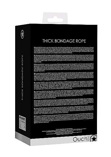 Thick Bondage Rope – 32.8 ft / 10 mLaat met OUCH! de touwtjes vieren! Dit dikke bondagetouw heeft een soepele en zijdeachtige textuur, zodat het comfortabel aanvoelt op de huid. Ideaal voor langdurige bondage waarbij het comfortabel moet zijn, maar ook duurzaam en sterk. Ontworpen voor al uw creatieve bindingen, is het touw, zowel voor beginners als voor gevorderde gebruikers, ideaal. Gemaakt van katoen en zijde, is het touw een indrukwekkende 10 meter lang met een diameter van 1 cm. Beschikbare kleuren: zwart en rood.