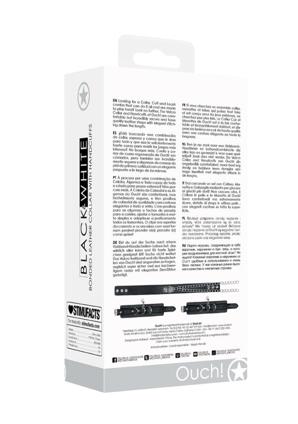 Bonded Leather Collar with Hand CuffsBen je op zoek naar een Halsband-, Handboei- en Leibandcombinatie die alles kan en gemaakt is voor ruwe spelletjes? Zoek dan niet verder. De Leather Collar and Handcuffs van Ouch! zijn ongelooflijk comfortabel, maar heel erg stevig en hebben leren riempjes van hoge kwaliteit met elegante stiksels in de lengte. Met riempjes voor de handboeien en drukknopen voor de halsband kun je de grootte heel gemakkelijk aanpassen en zijn ze geschikt voor bijna iedere maat. Door de clip op de kettinghouder en de D-ring connectoren kun je jouw geliefde op iedere manier in bedwang houden!