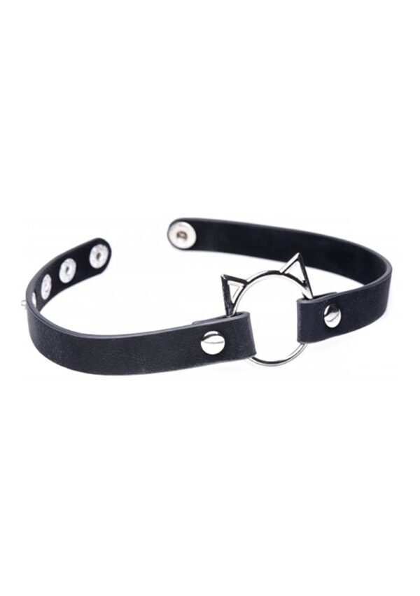 Kinky Kitty Ring Slim Choker – PU Leather – Black