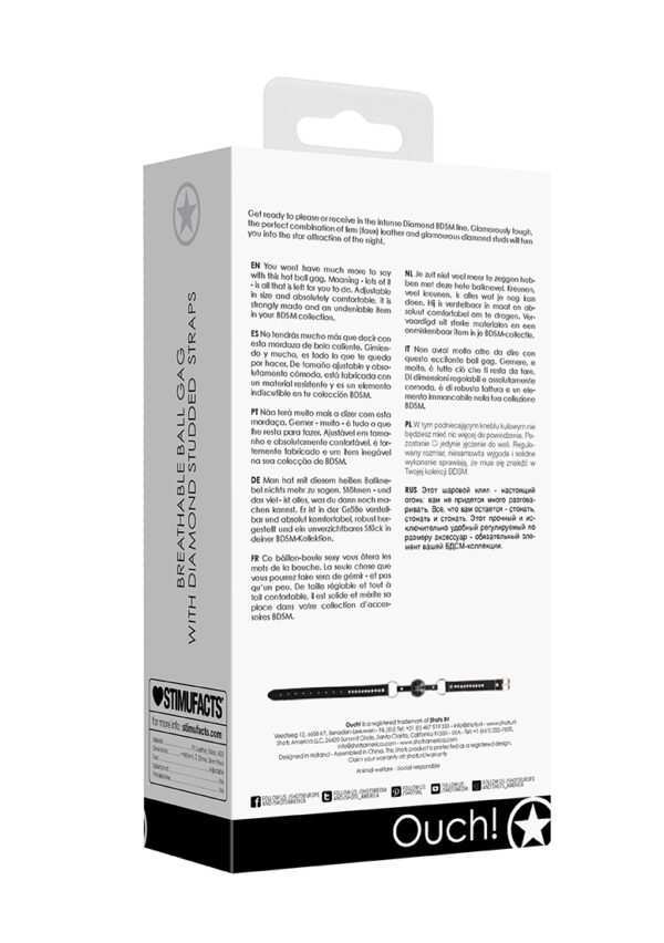 Breathable Ball Gag with with Diamond Studded StrapsJe zult niet veel meer te zeggen hebben met deze hete balknevel. Kreunen, veel kreunen, is alles wat je nog kan doen. Hij is verstelbaar in maat en absoluut comfortabel om te dragen. Vervaardigd uit sterke materialen en een onmiskenbaar item in je BDSM-collectie.