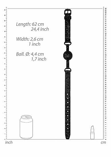 Breathable Ball GagSnoer uw partner de mond met deze OUCH! Ball Gag, perfect voor zowel beginners als gevorderde bondage-spelers. Deze stevige flatlaatvrije ball gag heeft metalen O-ringen en een verstelbare gesp met 9 gaatjes om makkelijk te verstellen. Hij is 62 cm lang en 2,5 cm breed. De bal heeft een diameter van 4,4 cm. Gemaakt van neopreen en kunstleer, met een prachtig ruitpatroon.