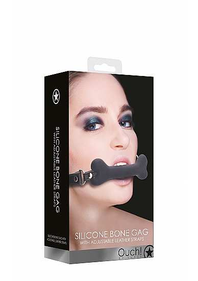 Bone GagDe gloednieuwe OUCH!- ball-gag komtin de vorm van een hondenkluif om uwerotische avonturen wat extra beet te geven!Deze mooi vervaardigde ball-gaggemaakt uit gladde, ftalaatvrije, kwalitatievesiliconen, is volledig aanpasbaar enkomt met twee riemen en een stevige klem.