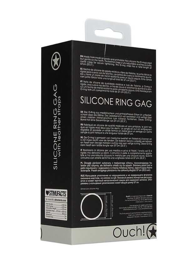 Silicone Ring Gag with Leather StrapsDeze fluweelzachte en volledig verstelbare siliconen O-ring knevel is perfect ontworpen voor comfortabel maar veilig aan banden leggen. Rek en open de lippen van uw onderdanige voor een verscheidenheid aan speelmogelijkheden met dit prachtig vervaardigde speelgoed! De O-ring is gemaakt van medische kwaliteit en ftalaatvrij siliconen en is stijf maar zacht voor de tanden. De lederen band is volledig verstelbaar en heeft een stevige metalen sluiting voor een veilige sluiting. Deze O-ring riem heeft een totale lengte van 57 cm (22.5). De binnendiameter van de flexibele siliconen ring is 4 cm (1,6).