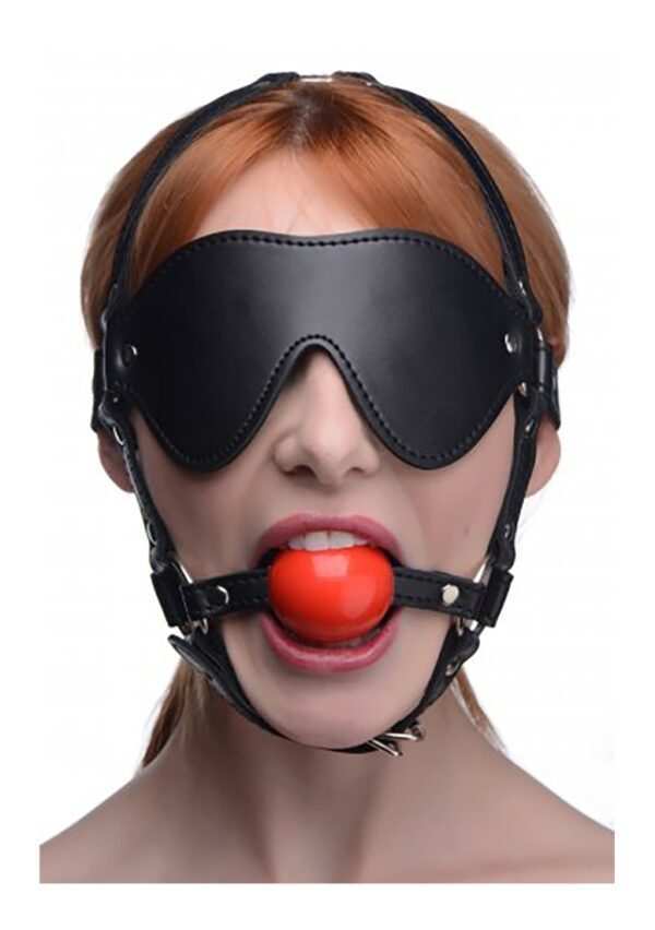 ST Blindfold Harness with Ball GagGag en verblind je sub met deze alles-in-een set! De lichtgewicht leren blinddoek ontneemt je zicht om je andere zintuigen te versterken, waardoor je gissen terwijl je partner zijn zin met je heeft, terwijl het plezier toeneemt. De rode ball gag geeft je sub een verleidelijke onderdanige uitstraling! Dit blinddoekharnas is volledig verstelbaar voor een perfecte pasvorm en is gemaakt van lichtgewicht en duurzaam PU-leer dat zacht, glad en donker is voor een comfortabele en bevredigende esthetiek. Afmetingen: Hoofdharnas past zich aan tot 23 inch in omtrek kinriem past zich aan tot 7,5 inch in omtrek bal gag diameter 1,65 inch Materialen: PU-leer, metaal, TPR Kleur: zwart, rood Blinddoekharnas met balgag Specificaties: Volledig verstelbaar: Aanpassen aan de kruin, achterkant van het hoofd, achterkant van de nek en je kin voor de perfecte fit dit harnas past op de meeste hoofdmaten Verhoog hun zintuigen: de lichtgewicht blinddoek is perfect om het zicht te ontzeggen en uw tastzin te vergroten rode bal gag stimuleert kwijlen en dempt de stem een beetje Stevige en zachte materialen: gemaakt van lichtgewicht en betrouwbaar PU-leer voor een langdurige en comfortabele toevoeging aan je collectie Perfect voor de meeste vaardigheidsniveaus: dankzij de aanpasbare grootte en het gebruiksvriendelijke ontwerp is dit blinddoekharnas is de perfecte overgang van beginner naar gemiddeld BDSM plezier