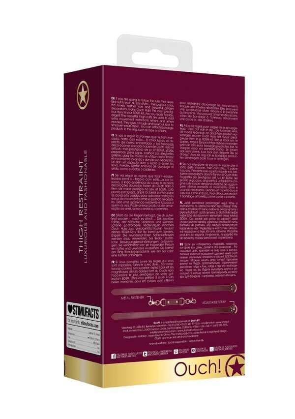 Thigh CuffsAls je de regels gaat volgen die je zijn opgelegd – doe dat dan in stijl… De luxueuze kleur, de mooie lederlook en prachtige gouden versieringen maken Ouch Halo het meest prestigieuze item in je BDSM-kit. Ben je klaar om te spelen, engel? De prachtige dijmanchetten worden gebruikt om extra bewegingsbeperkingen toe te voegen waar en wanneer dat nodig is. Ze geven een stoere en luxe uitstraling aan wie ze draagt. Aan de ring kun je bondage producten bevestigen, zoals touw of kettingen. Geniet van het gevoel van kracht en beleef een evenement vol heerlijk erotisch genot. De prachtige Ouch Halo is perfect voor een lekkere spannende sessie!