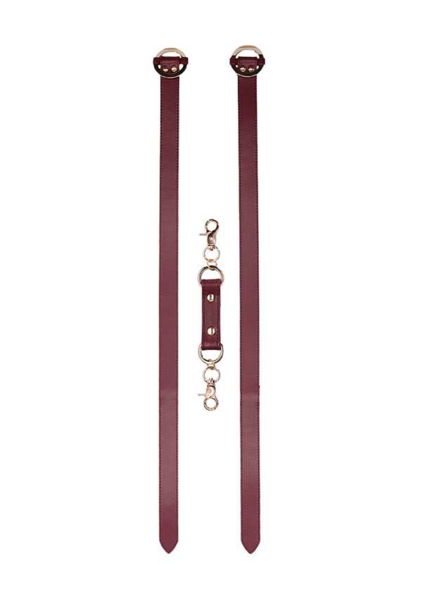 | omschrijving beslist | Thigh Cuffs Thigh Cuffs Als je de regels gaat volgen die je zijn opgelegd – doe dat dan in stijl… De luxueuze kleur, de mooie lederlook en prachtige gouden versieringen maken Ouch Halo het meest prestigieuze item in je BDSM-kit. Ben je klaar om te spelen, engel? De prachtige dijmanchetten worden gebruikt om extra bewegingsbeperkingen toe te voegen waar en wanneer dat nodig is. Ze geven een stoere en luxe uitstraling aan wie ze draagt. Aan de ring kun je bondage producten bevestigen, zoals touw of kettingen. Geniet van het gevoel van kracht en beleef een evenement vol heerlijk erotisch genot. De prachtige Ouch Halo is perfect voor een lekkere spannende sessie! |