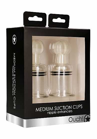 Suction Cup – MediumCombineer het plezier en de opwinding die deze tepelversterkersbieden, terwijl uw borsten worden getrakteerdop cupping massage. Sta versteld hoe verbazingwekkendeenvoudig en effectief deze zuignappen werken. Plaatsde zuignappen simpelweg op de gewenste plaats endraai de hendel handmatig waardoor de cups vast blijvenzitten. De OUCH!- SUCTION CUP NIPPLE ENHANCERSzijn gemaakt van stevig, hoogwaardig plastic, uitgevoerdin een wittetransparante kleur en worden geleverd in eenset van 2 in de maten S, M of L.
