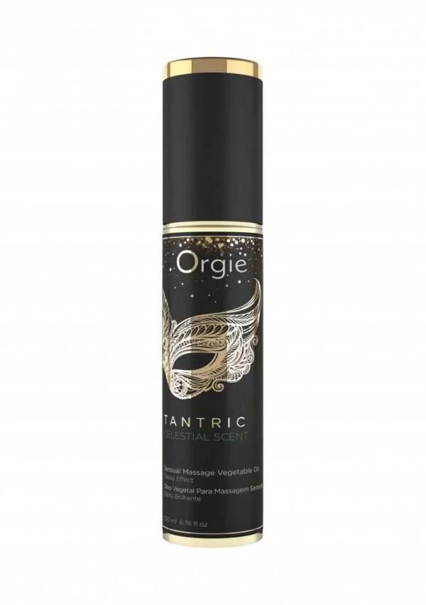 Tantric Celestial Scent – Shining Effect Massage Oil – 7 fl oz / 200 mlPlantaardige olie voor een sensuele of tantrische massage met een glinsterend effect. Bevat zoete amandelolie, druivenpittenolie, zonnebloemolie en arganolie.