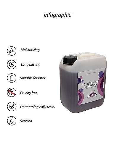 Lubricant – Forest Fruits – 1.3 gal / 5 lForest fruits lube is een glijmiddel op waterbasis met bosvruchtensmaak. Geschikt voor gebruik met latex condooms. Dermatologisch getest. Gebruiksaanwijzing: Breng zoveel gel aan als u wilt op het lichaamsdeel dat u wilt en herhaal dit zo vaak als u wilt. Buiten bereik van kleine kinderen houden. Koel en donker bewaren.