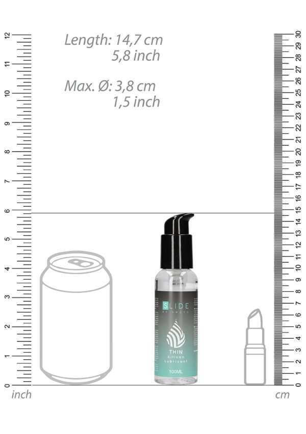 Slide – Thin Lubricant – 3 fl oz / 100 mlDeze extra gladde, dunne siliconen gaat super lang mee. Ideaal voor gebruik onder de douche of in bad. Aanwijzingen voor gebruik: Breng zo veel siliconen als je wilt aan op het lichaamsdeel dat je wilt en herhaal dit zo vaak als je wilt. Geschikt voor gebruik met latex condooms. Buiten bereik van kinderen houden. Bewaren op een koele, donkere plaats.