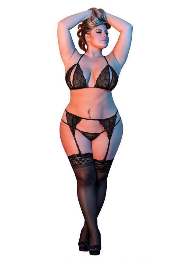 Peek-a-Boo Bra. Garter & G-Set – Black – S / M
