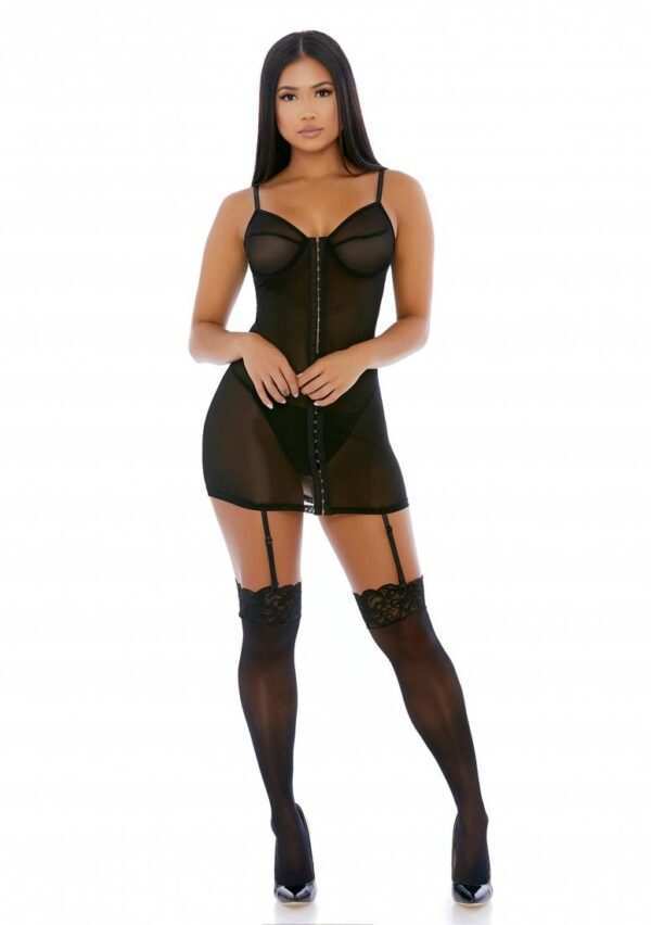 Hook Me Up – Nightgown Set – SHook Me Up tweedelige chemise lingerieset met doorschijnend gaas gecombineerd met haak-en-oogsluiting in het midden, ongevoerde beugelcups, verstelbare bandjes, bevestigde kousenbandjes en slipje. Dit product wordt geleverd in een doos.