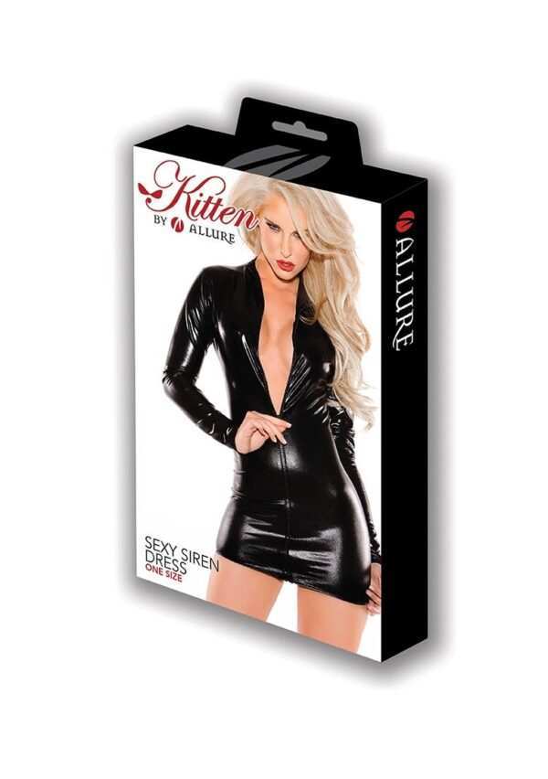 Sexy Siren – Dress – One SizeMini-jurk met lange mouwen en wetlook, met rits aan de voorkant.