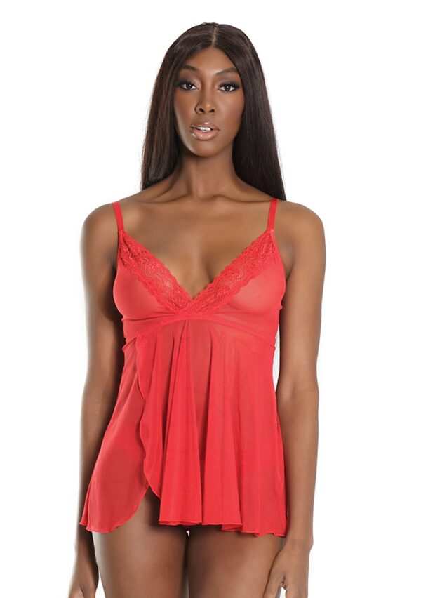 Trim Babydoll and Thong – Plus SizeBabydoll en stringset met scallop-kanten rand op de diepe V-halslijn. De babydoll heeft verstelbare bandjes.