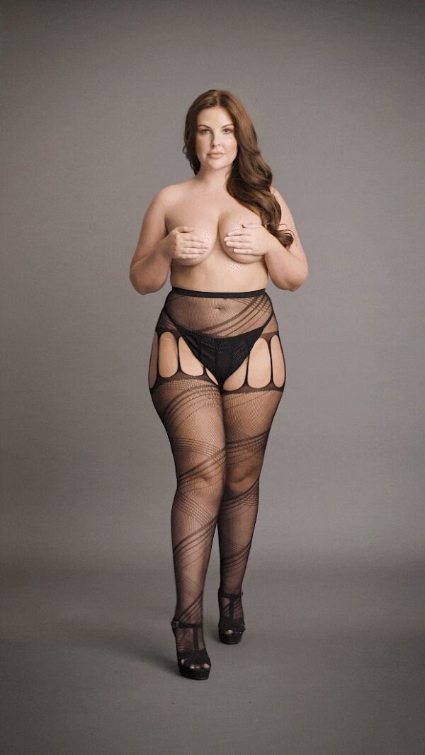 Crotchless Cut-Out Pantyhose – Plus SizePanty zonder kruis gemaakt van zacht, rekbaar visnet meteriaal met sexy cut-outs rond het been. Het decoratieve streep-patroon legt de nadruk op je benen en het zachte materiaal geeft een luxueus gevoel op je huid.String niet inbegrepen.
