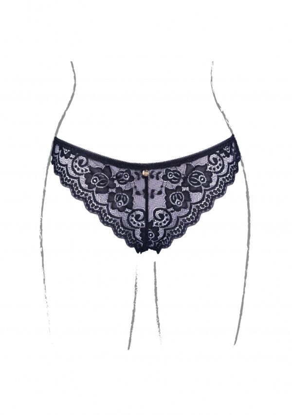 | Omschrijving Beslist | Zo – Lace Brief Back Lacing Golden Details – Black – OS – Het mooie kanten ontwerp van dit broekje geeft je bijna het gevoel dat je een lief meisje bent, totdat je omdraait. De achterkant van dit broekje is niet alleen open bij de billen, maar ook bij het kruis. Een perfecte mix van zoet en zout. |