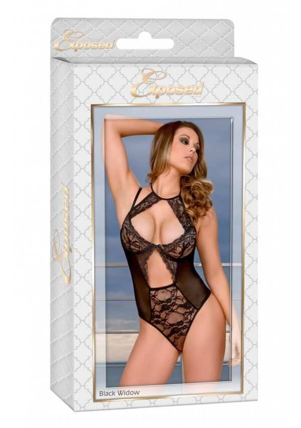 Teddy with Keyhole – S/MDeze stijl uit de Exposed by Magic Silk-collectie bestaat uit: een teddy met een apex halterhalslijn met klittenbandsluiting, beugel, sleutelgatuitsparingen, verstelbare schouderbandjes, haak- en oogsluiting, veterdetail met zachte elastische bandjes en string op de rug. Verleidelijk zwart doorschijnend kant omhuld met een verfijnd bloemenpatroon gecombineerd met tijdloos, soepel gaas