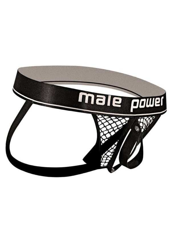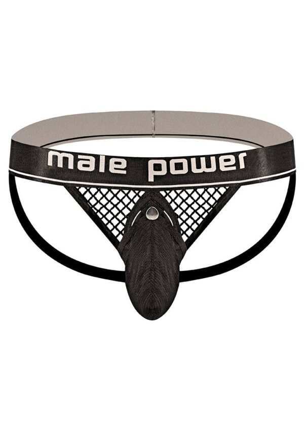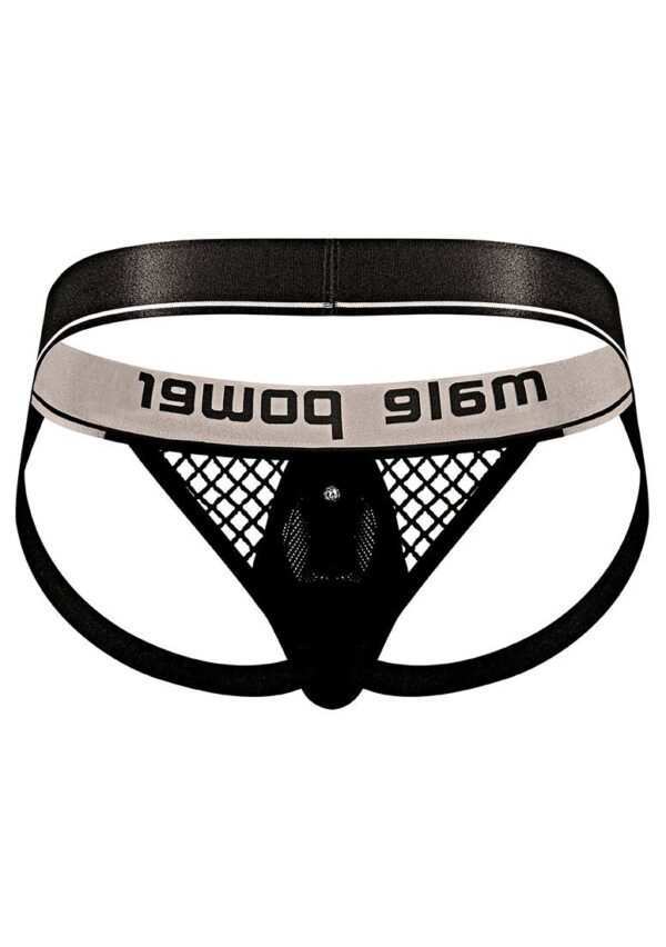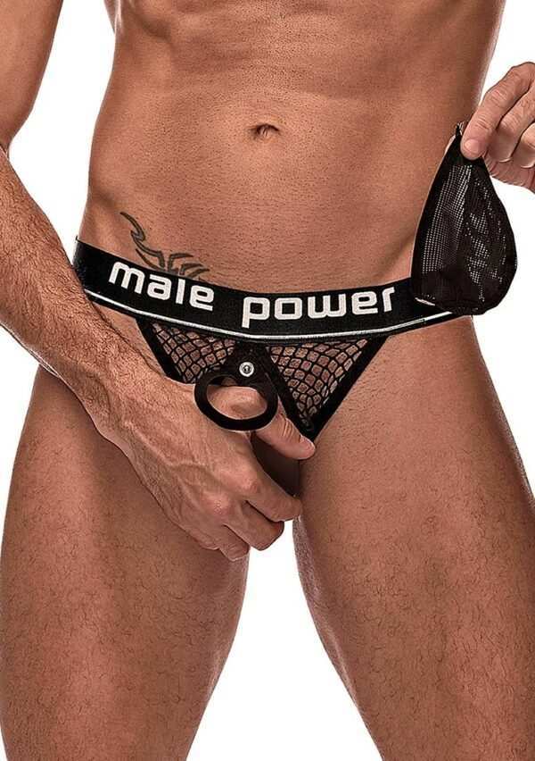 Cock Ring Jock – L/XL – BlackDeze stijl komt uit de Cock Pit Net-collectie van Male Power en bestaat uit: een Cock Ring Jock met een afneembaar zakje met drukknoopsluiting, een zachte elastische C-ring, zachte elastische beenbanden en afwerking en een satijnen tailleband met merklogo.