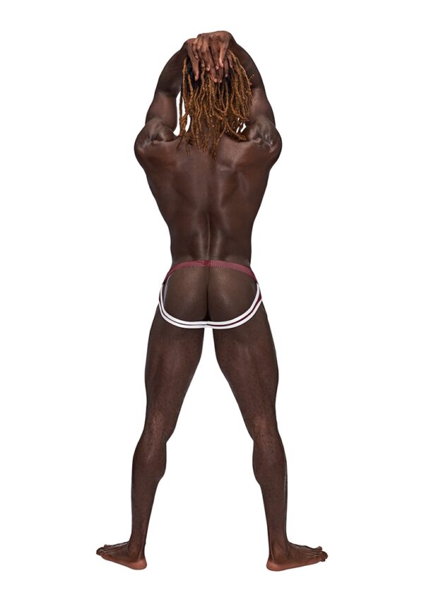 Sport Mesh Jock – S/MUit de Sport Mesh-collectie van Male Power, de Sport Jock, heeft een tailleband met stoffen bekleding die blijft zitten en een MP-tag met logo. Sportieve strepen van pluche elastaan benadrukken de voor- en achterbeenbanden. Volledige blootstelling van de achterkant.