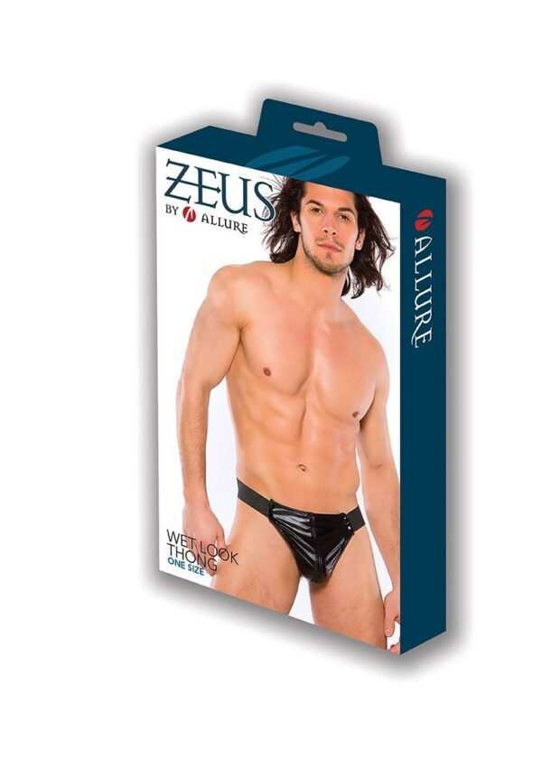 Zeus Wetlook Thong. Snap Front Opening – Black – O/S