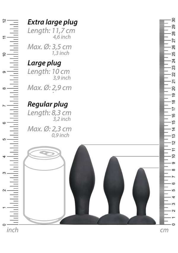 Apex – Butt Plug SetAls anale stimulatie echt jou ding is, dan hebben wij het perfecte speeltje voor je. Deze butt plug is gemaakt van zijde zachte siliconen en is toelopend aan de tip voor makkelijk en comfortabel inbrengen. De plug is ontwikkeld aan de hand van een ingenieus ontwerp voor maximale anale stimulatie, die alle gevoelige plekjes tegelijk raakt. Ouch! brengt met deze plug een nieuwe ervaring op het gebied van anale stimulatie welke jou uren aan plezier in de slaapkamer zal brengen of welke kamer dan ook.
