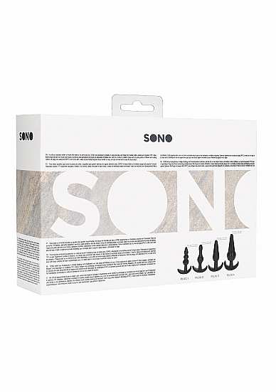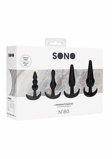 No.80 – 4-Piece Butt Plug SetSONO heeft een fantastische 4-delige buttplug-set ontwikkeld voor alle anaal-liefhebbers of voor zij die anaal plezier willen proberen! Deze pluggen, gemaakt van flexibel, zeer duurzaam en reukloos TPE rubber, zorgen voor urenlange amoureuze anale avonturen! Alle plugs zijn volledig ftalaatvrij. Elk speeltje heeft een andere vorm en grootte die veel verschillende en spannende opties biedt. Alle plugs zijn waterdicht (IPX7) en worden geleverd met een brede, ergonomisch ontworpen handgreep om het speelgoed eenvoudig en veilig te verwijderen en op zijn plaats te houden.