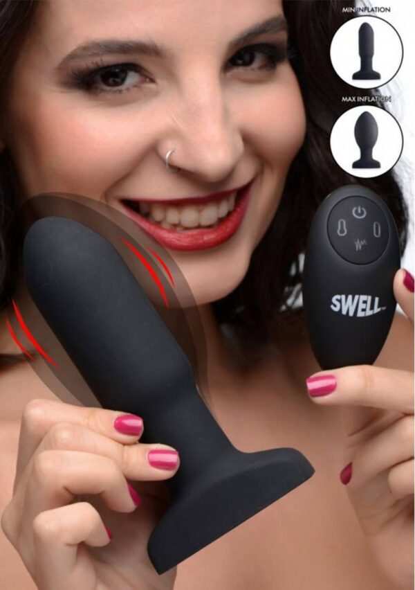 Inflatable Vibrating Silicone Butt PlugDuw een raket in je kont en wacht op de explosie! Vergroot je plezier met dit opblaasbare en vibrerende anale speeltje als geen ander. Deze zijdezachte siliconen plug zal zachtjes in je opzwellen voor een ongelooflijk gevoel van volheid. Trakteer uzelf of uw partner op 7 vibratiestanden, inclusief 3 snelheden en 4 patronen. De afstandsbediening doet het allemaal, stuurt zoemgeluiden naar je buit en stelt je in staat om het perfecte opblaaspunt te vinden. Houd gewoon de knop aan de linkerkant ingedrukt om te beginnen met ballonvaren, of druk er voorzichtiger op voor een langzame, geleidelijke groei. De knop aan de rechterkant laat hem onmiddellijk leeglopen tot zijn oorspronkelijke grootte voor een comfortabele verwijdering. Deze zwelplug is gemaakt van eersteklas siliconen en is niet-poreus en ftalaatvrij voor lichaamsveiligheid. Maak deze spatwaterdichte pleziertool na gebruik schoon met warm water en toycleaner of milde zeep. Vermijd gebruik met siliconen smeermiddelen om dit materiaal te behouden.