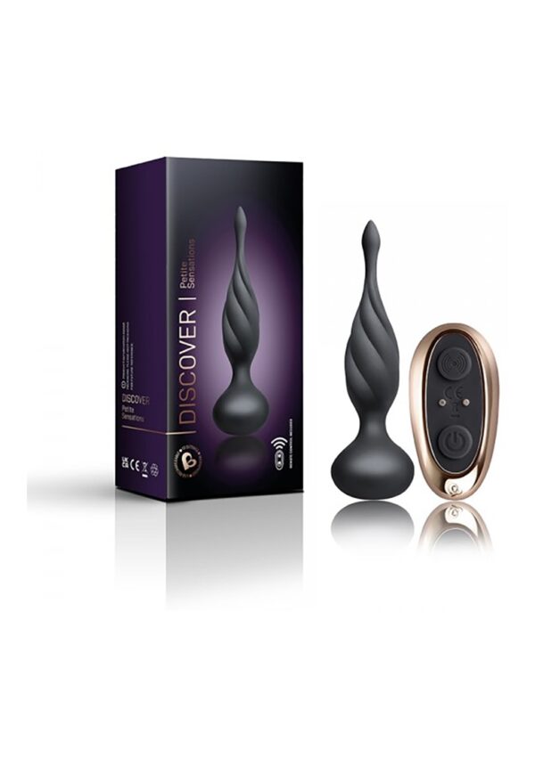| Omschrijving Beslist | Petite Sensations Discover – Black – Discover has been exquisitely crafted to take you on a journey of seductive anal exploration. The firm velvet touch base will drive deep pulsing vibrations to tease and tantalise your cheeks as your body grips the slim neck allowing the contoured shaft to slip perfectly into position. Use the remote to up change the settings or why not hand over the power to your partner to decide the pleasure. Feel your passion rise with each thrilling vibration as Discovers slimline shaft and beautifully tapered tip ingeniously flickers and teases you to climax. Indulge yourself ? its time to discover. |