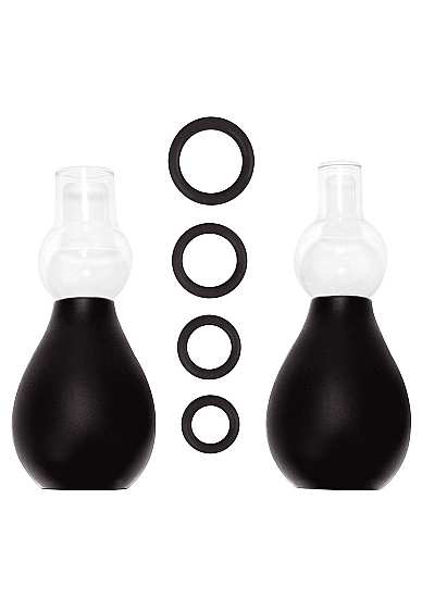 Nipple Erector SetHoud je tepels stijf en gevoelig met deze tepel erector set en ervaar het pompende genot! Om te beginnen, pak de pomp met de kleinste opening. Schuif de gewenste rubberen ring over het mondje en plaats deze op je tepel. Knijp in het ballonetje tot het gewenste resultaat is bereikt. Schuif nu de rubberen ring om je tepel om deze hard en gevoelig te houden. Herhaal deze stappen bij de andere tepel. Om de tepels nog groter te krijgen gebruik dan de pomp met de wijdere opening. Veel plezier!