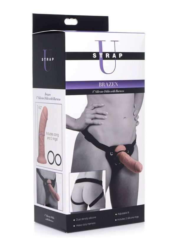 Brazen 8″ Silicone Dildo with Harness – Flesh