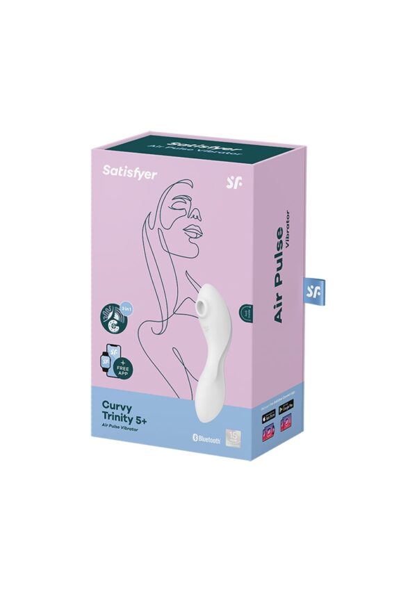 Curvy 5Plus – Air Pulse Stimulator and Vibration – WhiteBen je besluiteloos? De Curvy Trinity 5 functioneert als een Air pulse stimulator, lay-on vibrator en G-spot vibrator, alles in één! Gebruik elke functie gescheiden en handig. Met een zeer puntige punt en schuine zijkanten voor gerichte G-spot stimulatie, is dit product voor zowel beginners als kenners. Navigeer eenvoudig door drie verschillende productfuncties met het gemak van slechts één product. Bluetooth-compatibel, de Curvy Trinity 5 verbindt met de bekroonde, gratis, Satisfyer Connect-app, waardoor je de mogelijkheid hebt om de 3 krachtige motoren onafhankelijk van elkaar te bedienen en je plezier echt aan te passen. De Curvy Trinity 5 is gemaakt van lichaamsveilige siliconen, is oplaadbaar en waterdicht (IPX7). Koop iets dat alles kan!