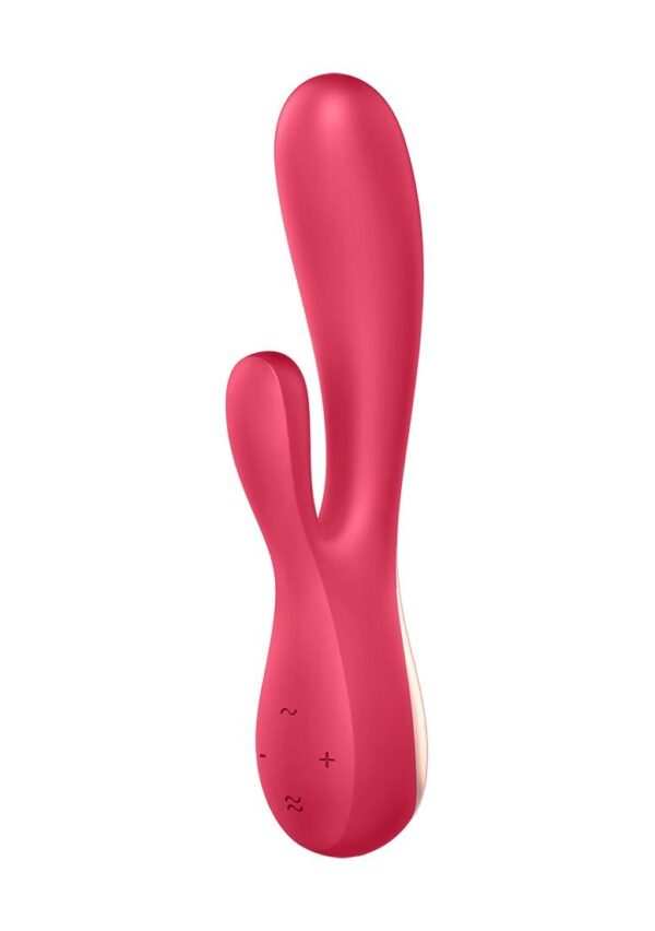 Mono Flex – Rabbit Vibrator – RedProductinformatie Mono Flex2 krachtige motoren, naadloze siliconen afwerking en gelijktijdige stimulatie van de G-spot en clitoris maken de Mono Flex het hoogtepunt van elke collectie. Het heeft ook een uitgekiende vorm en app-bediening.Dubbele stimulatie met de Satisfyer Mono FlexDe Satisfyer Mono Flex stimuleert zowel de clitoris als de G-Spot met sensuele vibraties ook via app-bediening! De konijnenvibrator is gemaakt van hoogwaardige, flexibele siliconen, die zich soepel aanpast aan je contouren en intense trillingen doorgeeft aan je hotspots. De trillingen zijn intuitief te bedienen via het bedieningspaneel of de gratis Satisfyer Connect App. Je bedient de Mono Flex op afstand via de app en kan ook nieuwe vibratieprogramma’s aanmaken of de vibrator koppelen aan je favoriete playlist op Spotify. De mogelijkheden zijn eindeloos! De Satisfyer Mono Flex heeft ook deze andere geweldige eigenschappen. Het uitgekiende ontwerp maakt de Satisfyer Mono Flex een echte blikvanger: hij is veel te mooi om weg te werken in je nachtkastje! Geniet je graag van je tijd alleen onder de douche of in bad? De Satisfyer Mono Flex is waterdicht (IPX7), dus je kunt hem ook gebruiken als het een beetje nat wordt – en hij is gemakkelijk schoon te maken met warm water en milde zeep. Als je konijn vibreertrator ooit op stoom komt, kunnen de geintegreerde batterijen worden opgeladen met de meegeleverde USB-oplaadkabel.