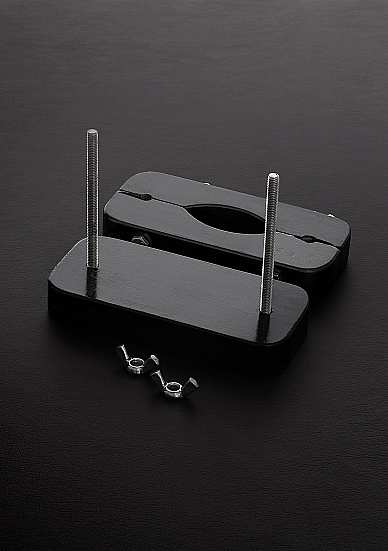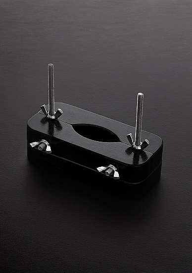 Ball Buster – Testicle ViceTerwijl de Humbler beweging beperkt, geeft de Ball Buster hem enige vrijheid om te genieten van het heerlijke klemmen van zijn testikels. Met vier vleugelmoeren om de druk en het gevoel aan te passen, biedt de Ball Buster Testicle Vice een verscheidenheid aan stimulatie. Gemaakt van hout en afgewerkt met zwarte lak. Deze gepatenteerde Testicle Vice is volledig verstelbaar, zowel bij het aanbrengen van de Ball Buster, als bij het aanpassen van de druk op de testikels.