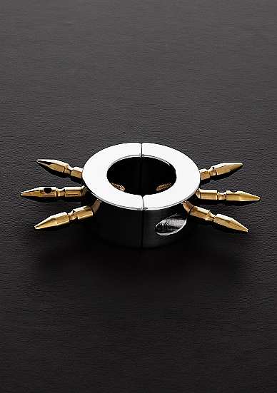 Ball Stretcher with SpikesStalen tweedelig Ball Stretcher met verstelbare interne en externe spijkers. Deze fijne, erotische, roestvrij stalen Ball Stretcher is comfortabel, leuk, uniek en ziet er geweldig uit! Laat je niet afschrikken door het gewicht! Het past urenlang comfortabel met een aangename, gezellige kleine herinnering dat ze zo klaar zijn als jij bent voor actie. Geleverd met een inbussleutel.