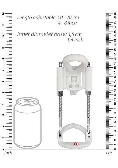 Penis ExtenderGrootte is belangrijk! Bereik permanent resultaat met deze opgepompte penisverlenger. Deze penisverlenger vergroot zowel de lengte als de omvang van de penis door tractie vanuit de verende stalen stangen ter ondersteuning van het natuurlijke vermogen van het lichaam om te veranderen en te ontwikkelen onder lichamelijke invloed. Als u uw penis onderwerpt aan voortdurend oprekken, gaan de cellen delen en vermenigvuldigen, waardoor de weefselmassa toeneemt. Hij heeft een comfortabel ontwerp voor alle maten met de nieuwe generatie technologie van schuifbelasting, waardoor deze opgepompte penisverlenger eenvoudig is en makke- lijker te gebruiken dan alle andere vergelijkbare apparaten. Ideaal voor mannen hun penis willen vergroten, qua lengte en qua omvang. Alleen te gebruiken door 18. De opgepompte penisverlenger kan tot negen uur per dag gedragen worden, maar het wordt aanbevolen om iedere paar uur een pauze in te lassen, zeker als u het product voor het eerst gaat gebruiken.WAARSCHUWING: Lees de producthandleiding voordat u een vacuumpomp of cockring gebruikt. Stop onmiddellijk met het gebruik van de apparaten als u pijn of ongemak ervaart.