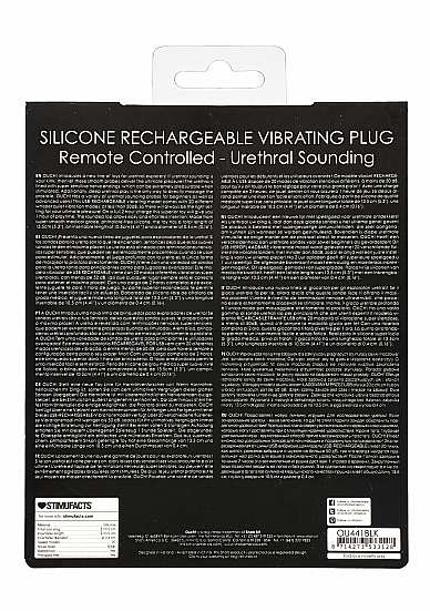 Silicone Rechargeable Vibrating Plug with Remote ControlOUCH! Introduceert een nieuwe lijn met speelgoed voor urethrale ontdekkers! Als urethraal uw ding is, laat dan deze gladde sondes u het ultieme genot geven! De plasbuis is bekleed met supergevoelige zenuwuiteinden, die zeer aangenaam kunnen zijn wanneer ze worden gestimuleerd. Bovendien is diepe urethrale stimulatie de enige manier om de prostaat direct te masseren. OUCH! Heeft een verscheidenheid aan urethrale sondes voor zowel beginners als gevorderden! Dit USB-HEROPLAADBARE vibrerende model wordt geleverd met 20 verschillende fluisterstille vibratiestanden, met minder dan 50dB, zodat er altijd wel een juiste instelling is voor uw ultieme plezier! Na 2 uur opladen geeft dit superieure speelgoed u 1 uur speeltijd. De afgeronde bovenkant maakt eenvoudig en moeiteloos inbrengen mogelijk. Dit speelgoed, gemaakt van supergladde, ftalaatvrije siliconen van medische kwaliteit, heeft een totale lengte van 13,5 cm (5,3) met een inbrengbare lengte van 10,5 cm (4,41) en een diameter van 0,4 cm (0,16).