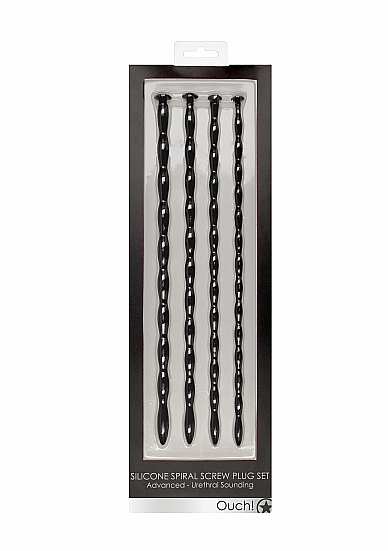 Silicone Spiral Screw Plug Set AdvancedOUCH! Introduceert een nieuwe lijn met speelgoed voor urethrale ontdekkers! Als urethraal uw ding is, laat dan deze gladde sondes u het ultieme genot geven! De plasbuis is bekleed met supergevoelige zenuwuiteinden, die zeer aangenaam kunnen zijn wanneer ze worden gestimuleerd. Bovendien is diepe urethrale stimulatie de enige manier om de prostaat direct te masseren. OUCH! Heeft een verscheidenheid aan urethrale sondes voor zowel beginners als gevorderden! Deze set met 4 naalden heeft gladde spitse punten om eenvoudig in te brengen. De vlakke, afgeronde kop zorgt voor een veilige en eenvoudige extractie. Deze sondes, gemaakt van supergladde, ftalaatvrije siliconen van medische kwaliteit, hebben een totale lengte van 30 cm (6,1) om extra diep te gaan! Ze hebben een inbrengbare lengte van 29,6 cm (11,65) en 4 verschillende diameters van 0,7 cm (0.28), 0,8 cm (0.32), 0,9 cm (0.36) en 1 cm (0.4). Altijd te gebruiken met een royale portie steriel glijmiddel op waterbasis en langzaam en stapsgewijs inbrengen voor maximaal plezier.