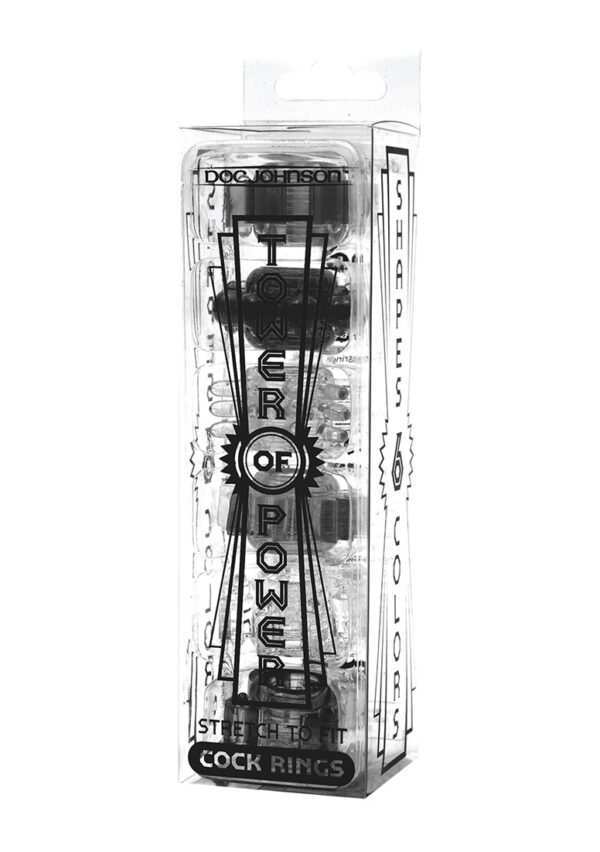 Tower Of Power – Cockring Set – 6 PiecesGeef jezelf de toren van krachtige cockringen-set en opwinding zal zeker volgen. U kunt kiezen uit een grote selectie van 6 vormen met deze verrukkelijke selectie zwart gekleurde cockringen. Deze penisringen zijn gemaakt van super rekbaar TPE en zullen je speeltijd spannender maken. Laat het plezier langer duren met Doc Johnson’s Tower of Power.