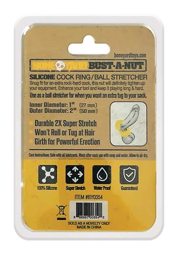 Bust a Nut – CockringMoerringBuitendiameter 2,0 (50 mm)Binnendiameter 1,07 (27 mm)Dikke omtrek voor krachtige erectieGeen rolcomfort, comfortabele pasvormExtreme duurzaamheid100% zachte siliconen, 2 x rekDit product is veilig met alle glijmiddelen, volledig hypoallergeen, niet-irriterend en geschikt voor de gevoelige huid.
